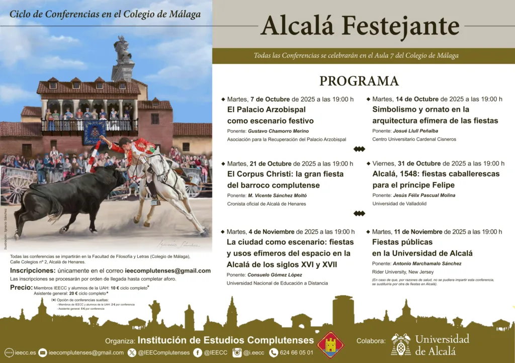 Se trata de un ciclo de seis conferencias que tendrán lugar los días 7, 14, 21 y 31 de octubre y el 4 y 11 de noviembre de 2025. El ciclo completo de conferencias tiene un importe de 10€ para Miembros de la IEECC y alumnos de la UAH y 20€ para el resto del público.