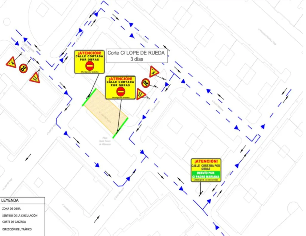 La Policía Local informa que, en los próximos días, se realizarán cortes de tráfico puntuales por obras en distintos puntos de la ciudad, por lo que se recomienda a los conductores utilizar los itinerarios alternativos indicados en los planos adjuntos.