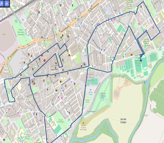 – Camino del Caz – Calle Fernán Falcón – Gta. Aguadores – Paseo Aguadores – Ronda del Henares – Ronda Fiscal