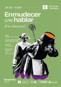 Tras el éxito cosechado dos temporadas atrás, regresa al Corral Enmudecer con hablar, un programa compuesto por los entremeses de Miguel de Cervantes El vizcaíno fingido y Los habladores. En ellos, la palabra cervantina propicia situaciones de enorme riqueza teatral, con un juego de engaños y fingimientos que dan fe tanto del humor del dramaturgo, pleno de vigencia, como de su humanismo y su portentosa imaginación. Este espectáculo se integra a la notable tradición de la Fundación Teatro de La Abadía de llevar a escena la obra literaria del más ilustre alcalaíno.