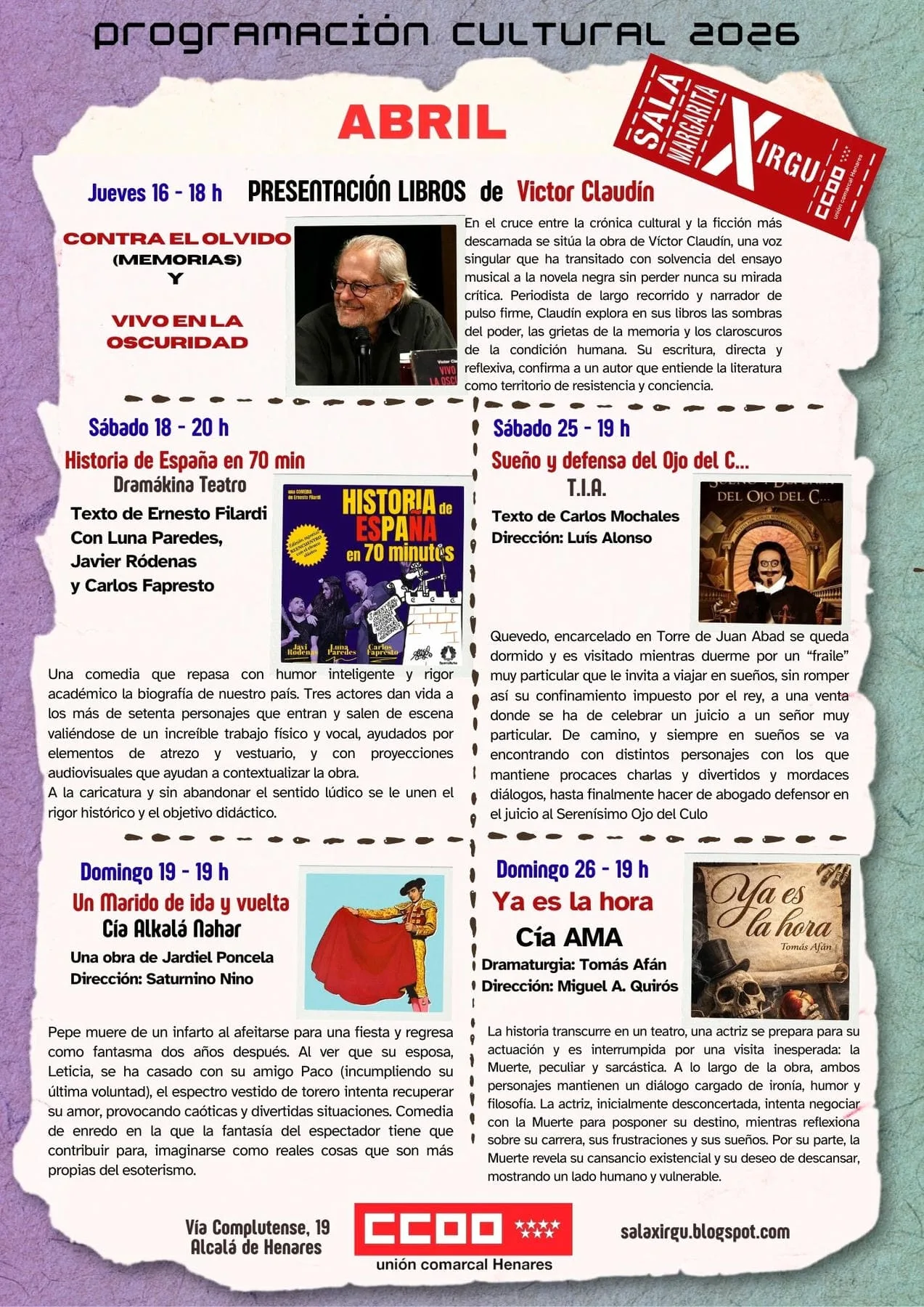 Entradas: General 15 € / Afiliación CCOO 10 €