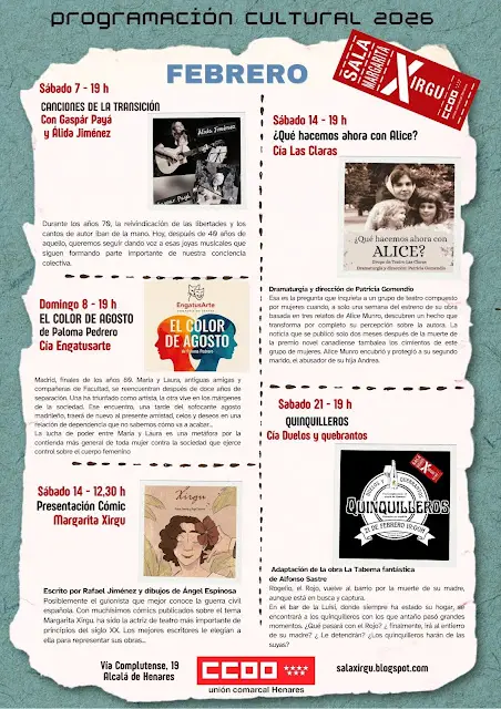 La sala Margarita Xirgu es uno de las salas culturales de Alcalá de Henares con programación habitual por temporadas en la que se programan teatro, danza, música, festivales, presentaciones de libros, eventos solidarios y mucho más. Puedes seguir la programación en nuestra web para no perderte nada
