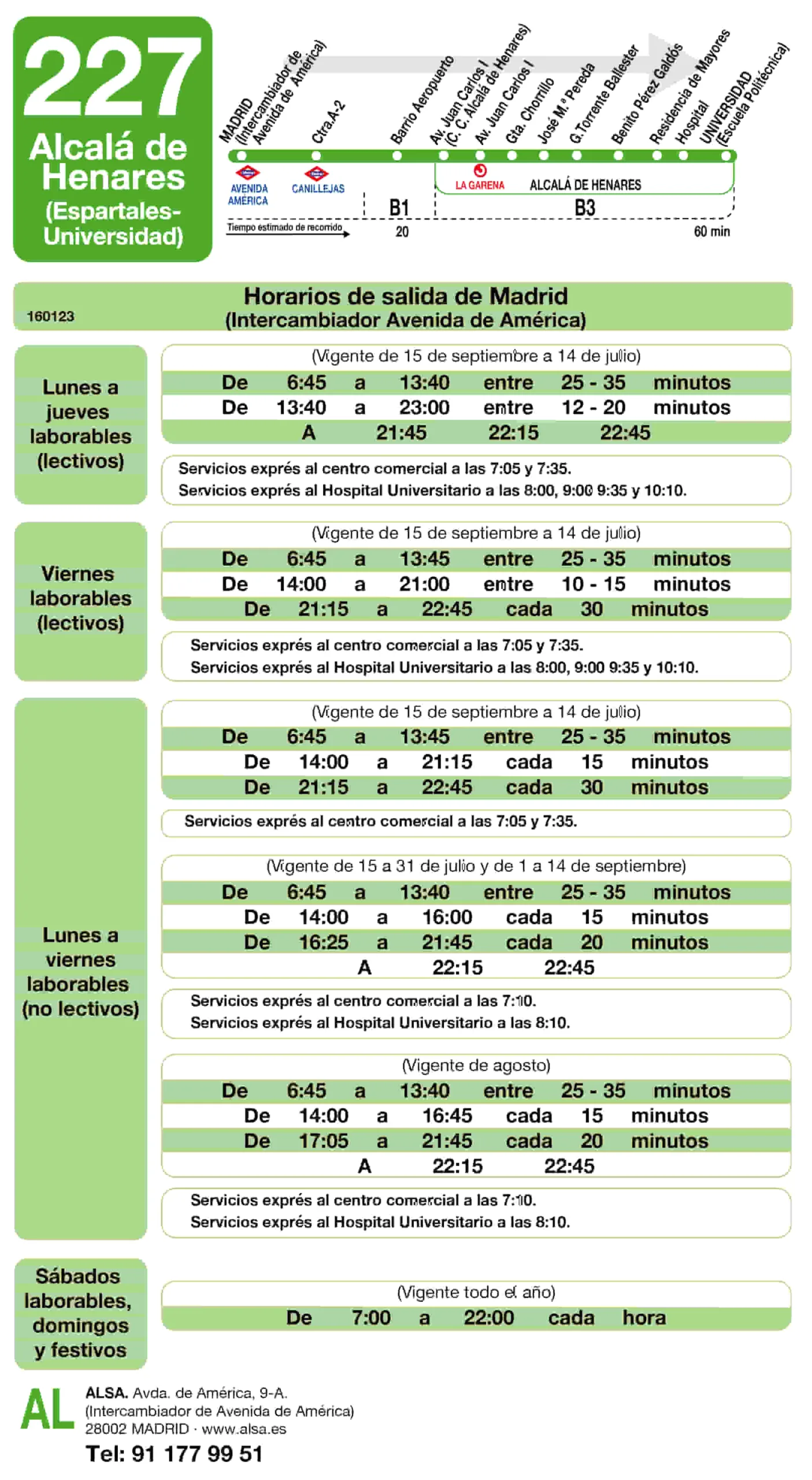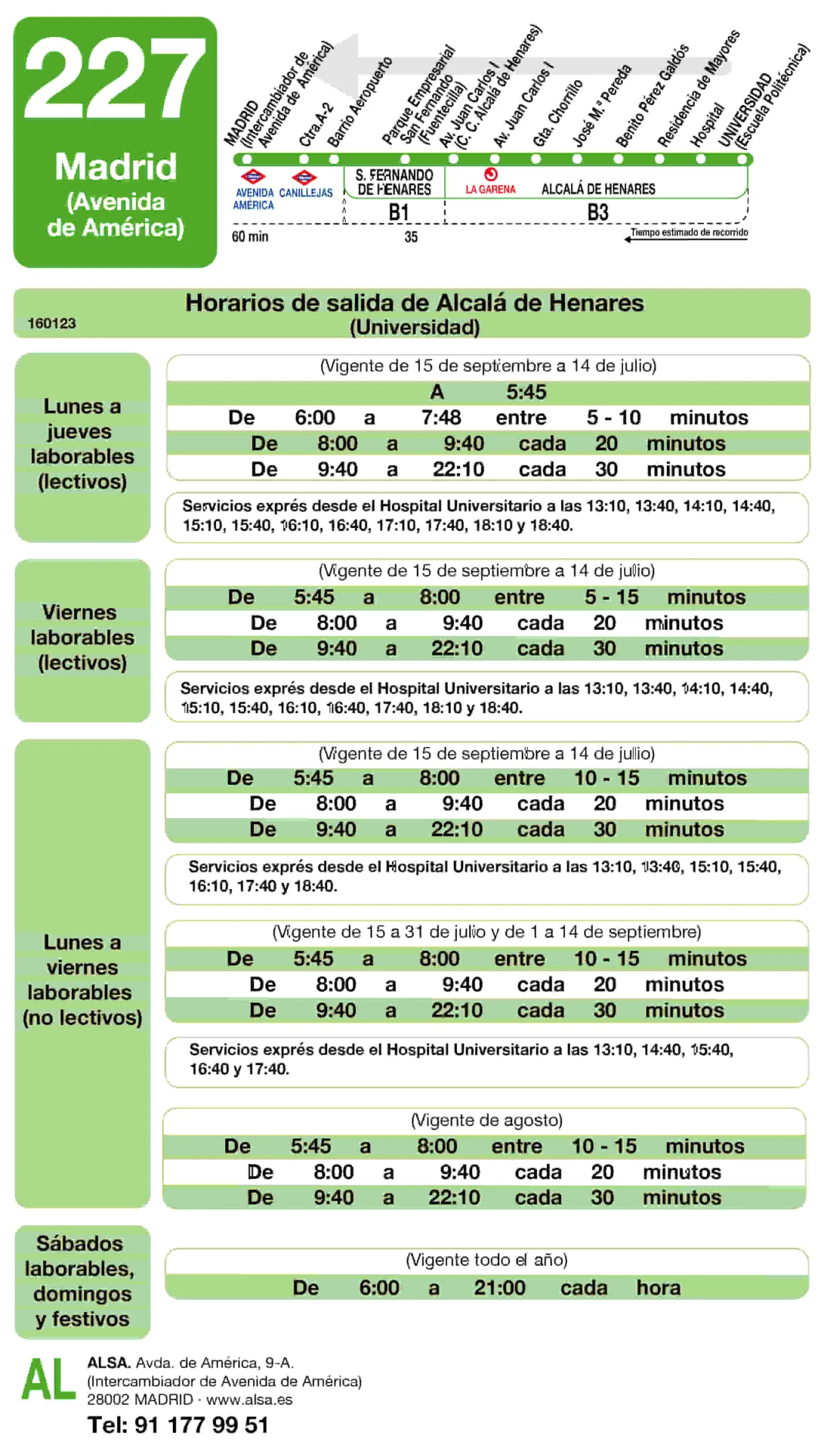Línea 227- MADRID (Avd. América)- Alcalá (Espartales- Universidad)
