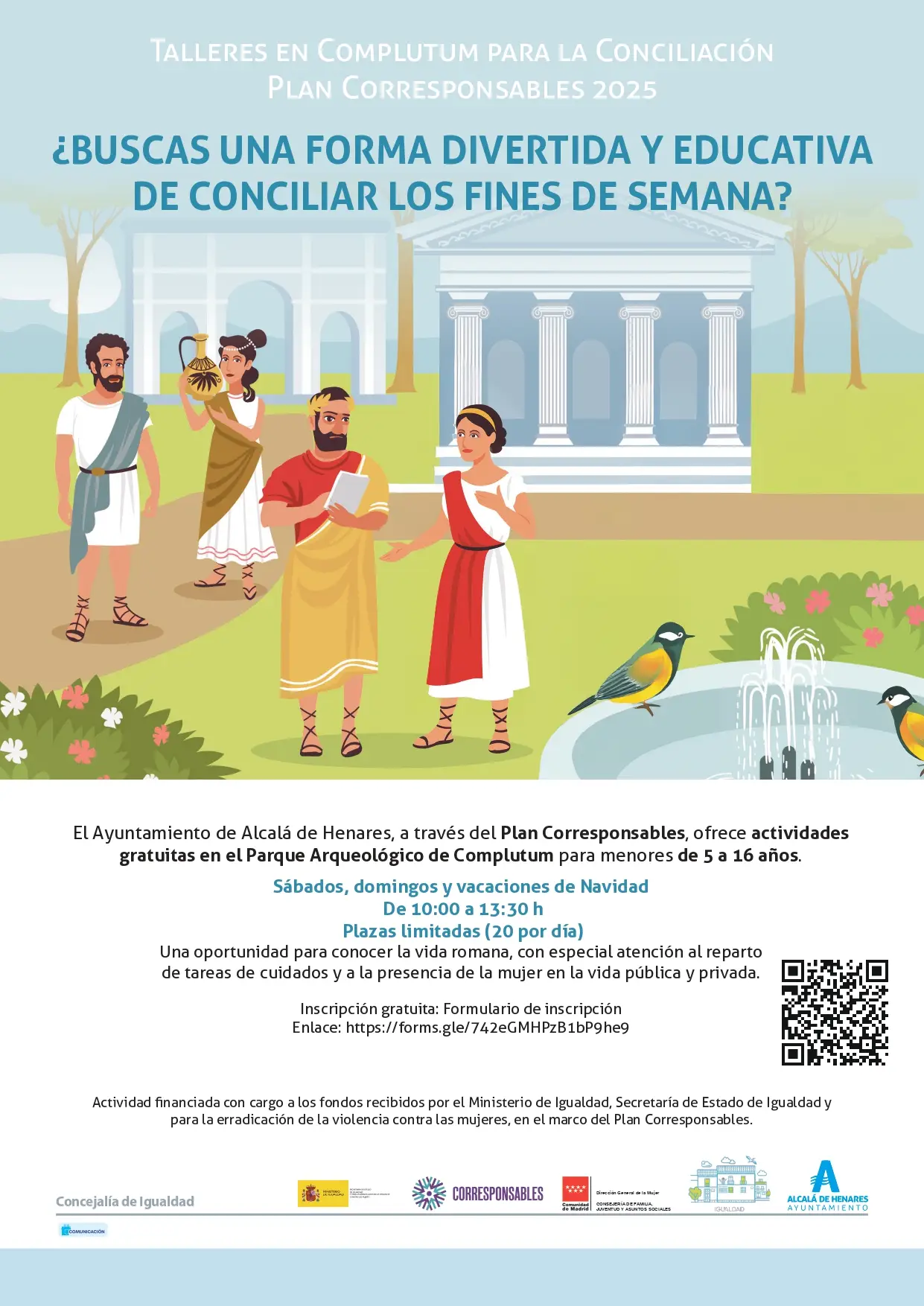 La Concejalía de Igualdad del Ayuntamiento de Alcalá de Henares ha puesto en marcha, en el marco del Plan Corresponsables 2025, unos talleres para la conciliación que tendrán lugar en Complutum.